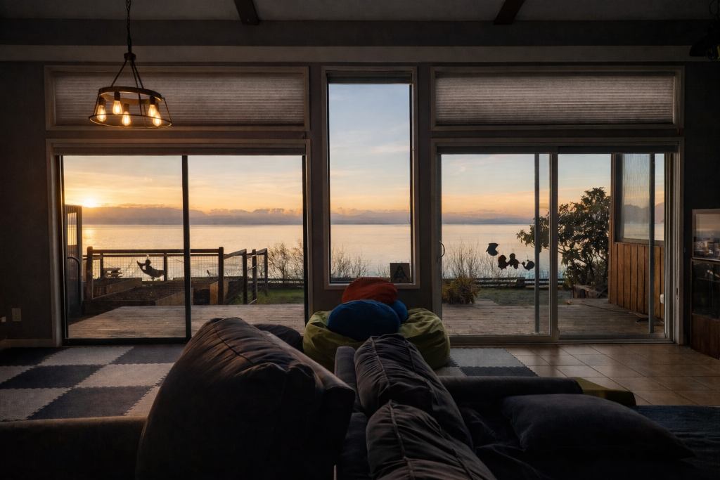 The open kitchen and dining area flow seamlessly into the main living space, enhanced by oversized windows that capture natural light and maximize surrounding views. An optional, extra-large living room section may be included depending on your lot size and relocation logistics–resulting in flexible overall dimensions.