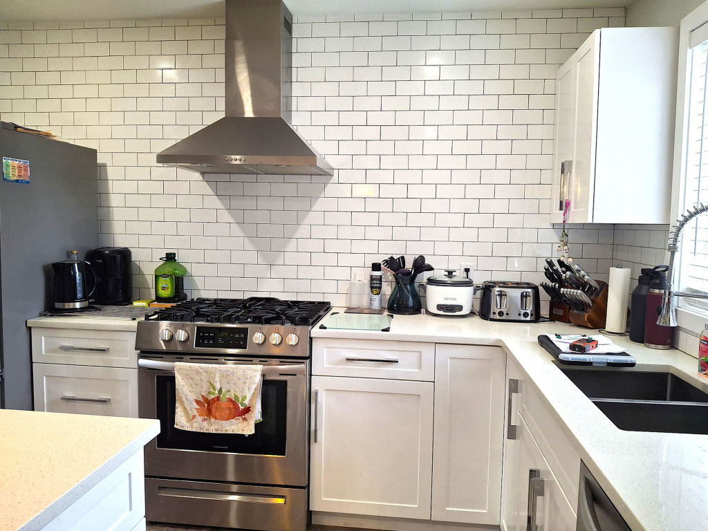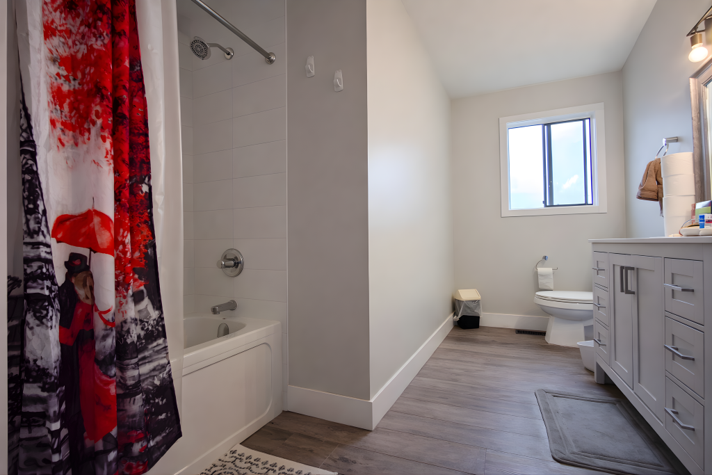 There are three sizable bedrooms with the master containing a squeaky clean ensuite. An oversize main bathroom boasts the same cabinetry and a window.