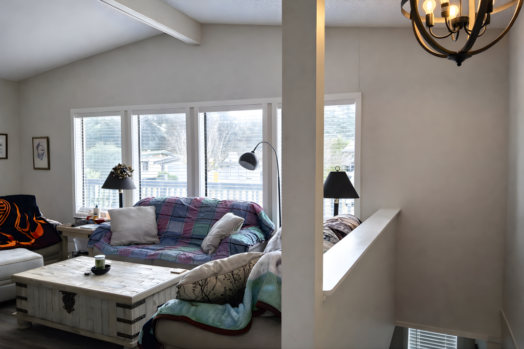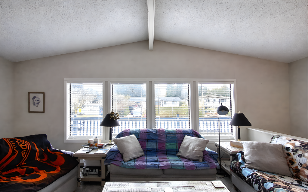 An unusual and super clean home with the roof peak running on the narrow plane of the building. This feature facilitates the vaulted living room, a perfect suitor for a view property! The interior is meticulously updated and maintained with stylish modern finishes.