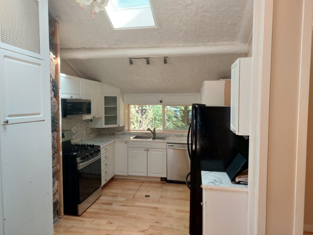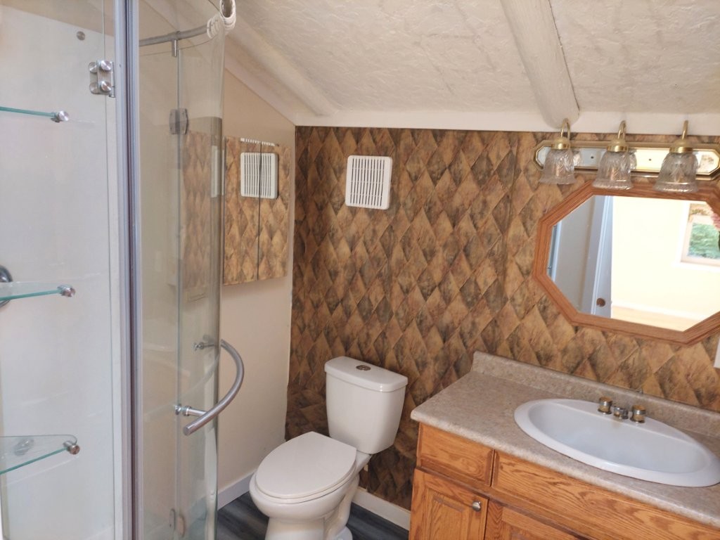 The large one-bedroom layout is cozy, yet spacious with an oversized main bathroom; rare for a cottage setup. The updated bathrooms, floors and windows mean there are no renovations needed, and the compact design makes relocation easier and minimizes wire costs due to low roof height.