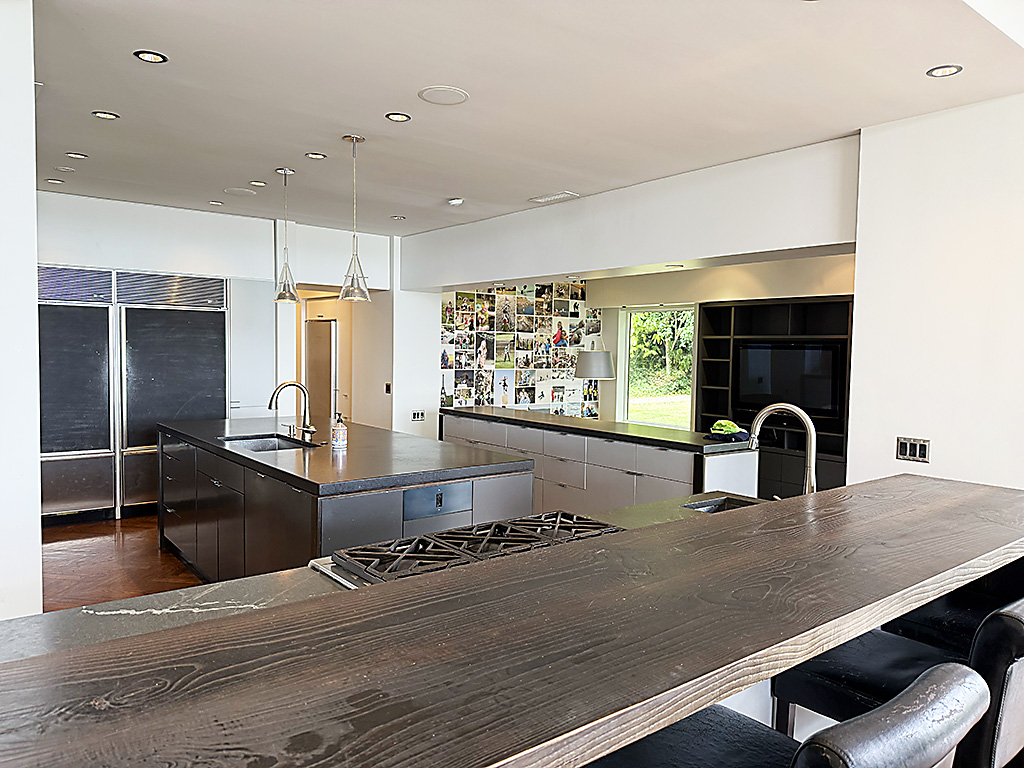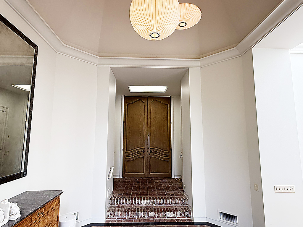 Designed and built in 1969 by “Architect to the Stars,” Hal Levitt, from Southern California, the house is notable first for its sheer scale and clarity of plan. With 6,230 sq/ft of interior space arranged largely on a single level, the rooms are generous, well-proportioned, and deliberately separated into public and private zones. Ceiling heights vary throughout the house, reaching 11 to 13 feet in several primary living areas, lending a sense of openness and volume that is increasingly rare in contemporary construction. The main floor comprises 5,560 sq/ft of floor space, and a smaller portion, 570 sq/ft of the space is a “staff’s apartment” situated above two-car garage in an L-shaped configuration to the main parts of the house.
